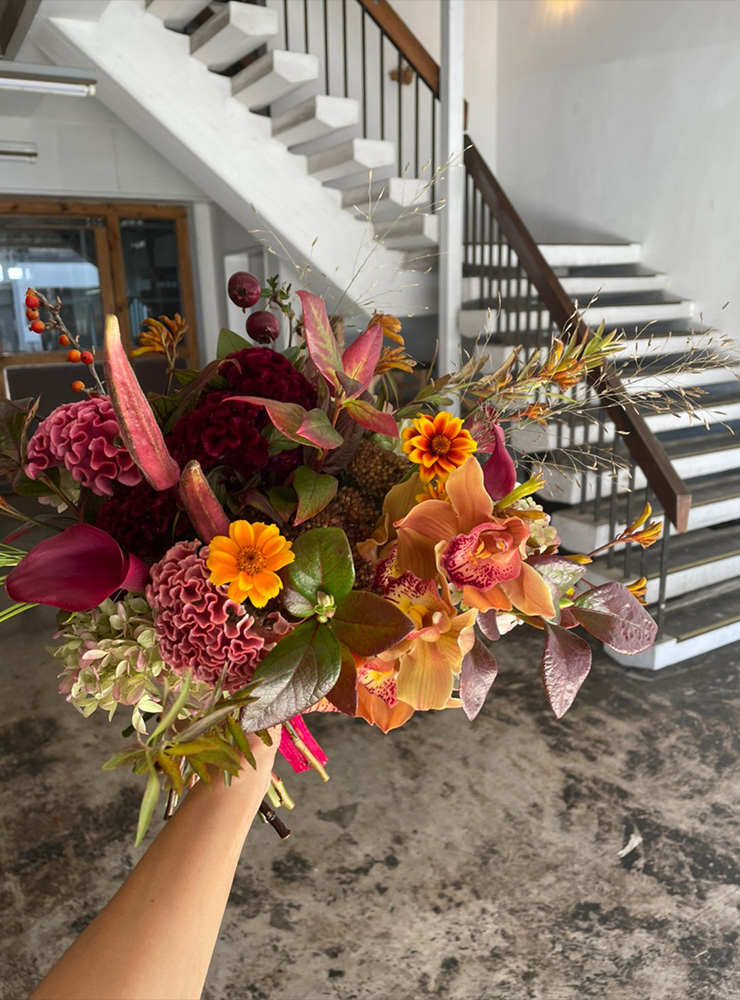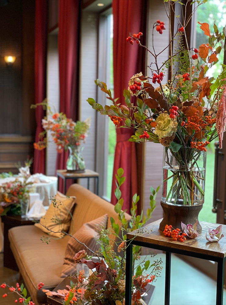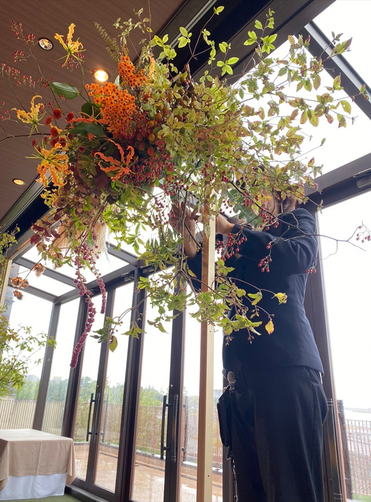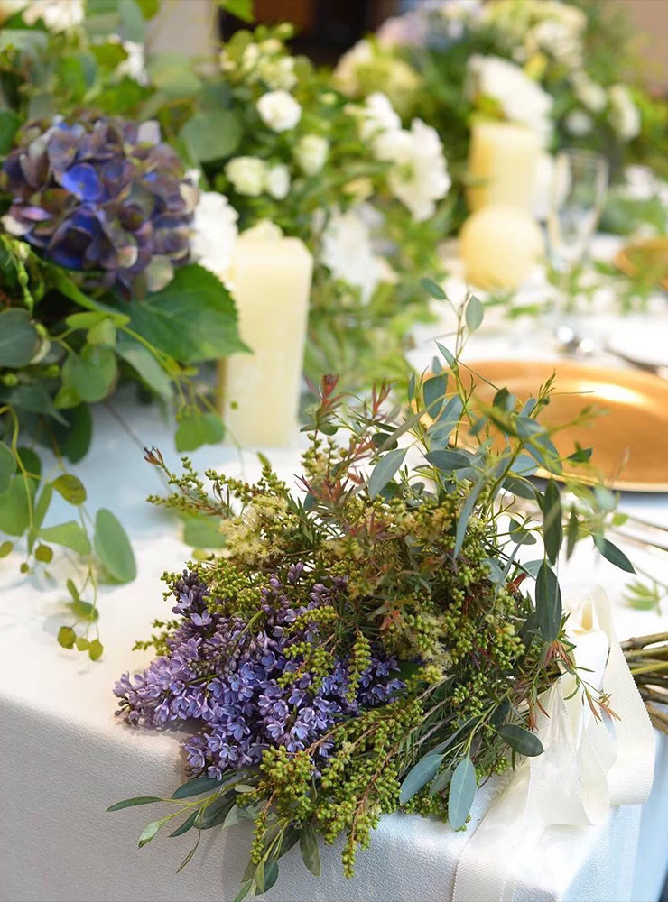 ウェディングブーケから会場装花まで。 お打ち合わせをして、お2人とお話をしながらイメージする空間へトータルコーディネート。 アウトドアウェデング、カフェウェディングなど持ち込み会場装花もお声かけください。