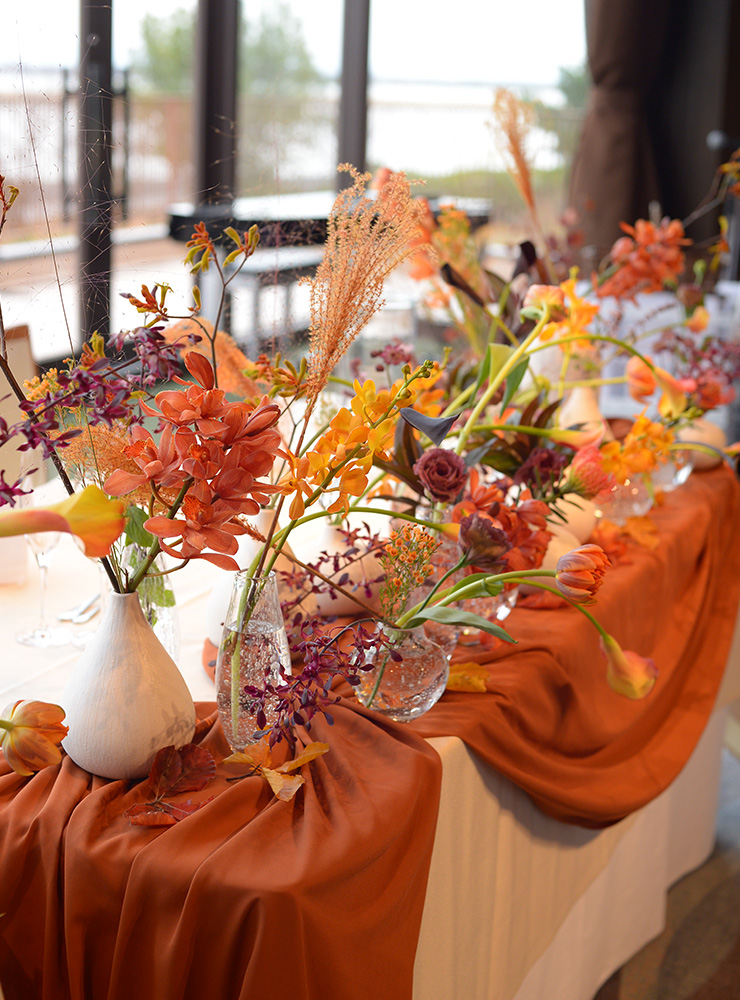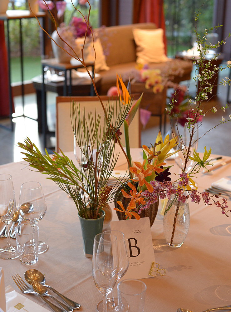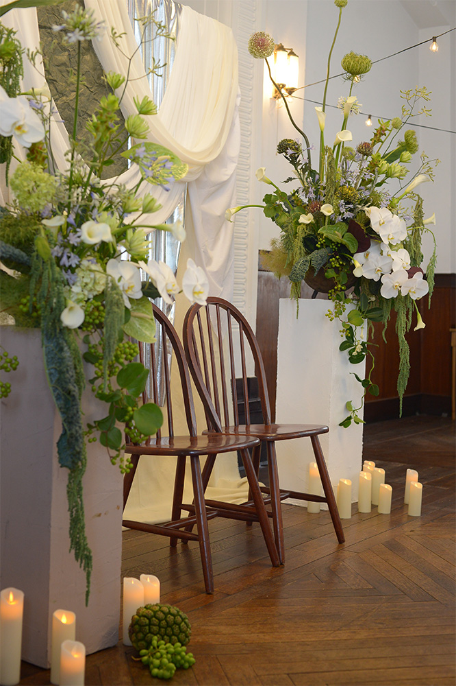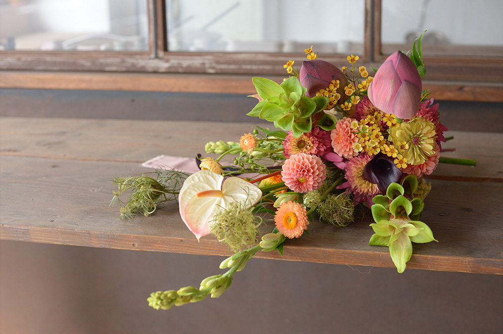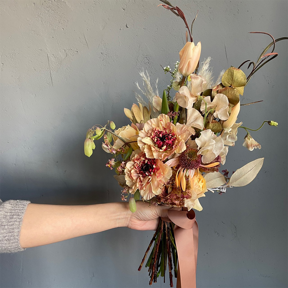 ウェディングブーケから会場装花まで。 お打ち合わせをして、お2人とお話をしながらイメージする空間へトータルコーディネート。 アウトドアウェデング、カフェウェディングなど持ち込み会場装花もお声かけください。